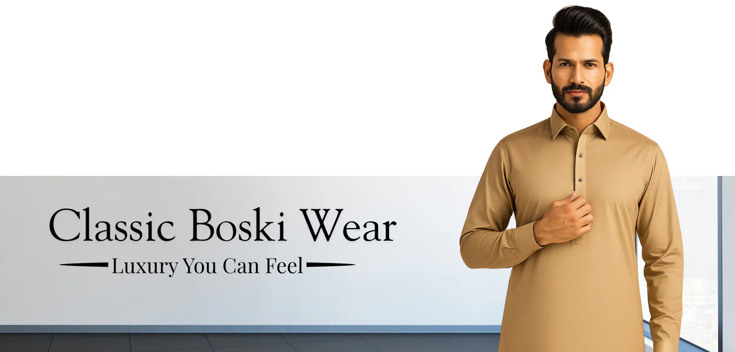 From premium washing wear shalwar kameez to airy cotton ensembles and timeless Boski classics, every piece is designed to refine your everyday — with elegance, comfort, and enduring style.